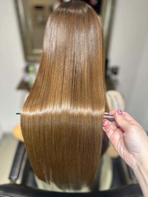 1回の施術でダメージケアとストレートケアの両方の髪質改善ができます。(ストレートパーマや縮毛矯正のような還元剤は入っていないのでダメージはありません。)